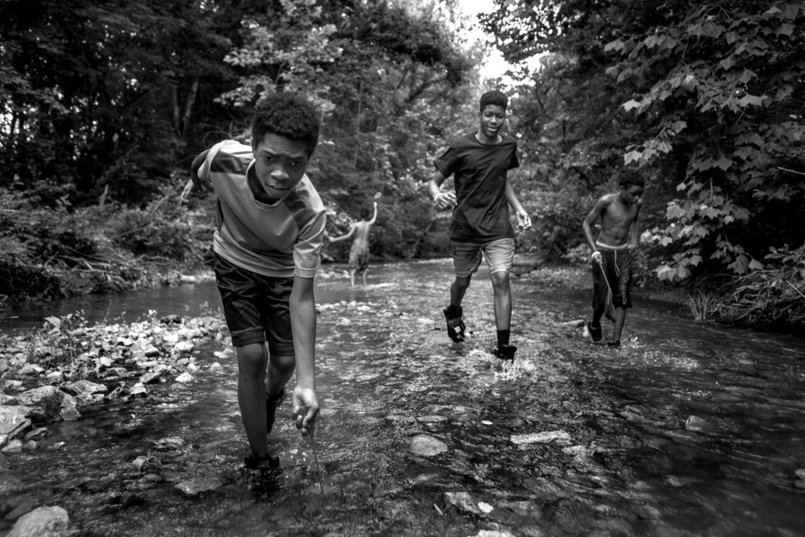 From left, Lemuel Gilbert, Bradford Woods, and Kazyrion Murray wade through a shallow creek while looking for fish and crawdads Thursday, June 27, 2019, near the Castor River in Bollinger County. (Published July 1)