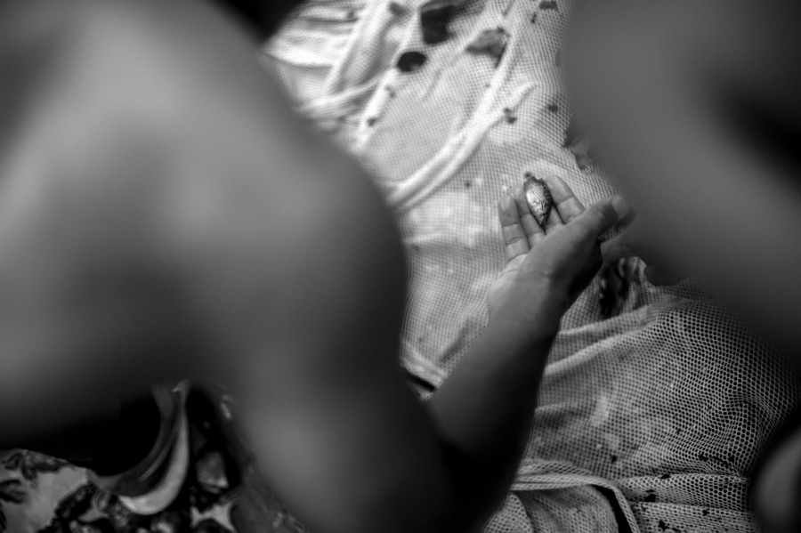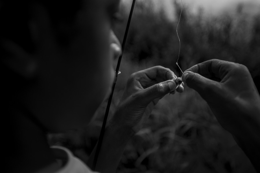 TYLER GRAEF ~ tgraef@semissourian.com Jeremiah Twiggs unhooks a bait minnow to release it back into a pond before heading back to the cabin for dinner after fishing Thursday, June 27, 2019, near the Castor River in Bollinger County. Twiggs, 13, said he usually fishes in Capaha Pond in the middle of town in Cape Girardeau, where he lives, but said while fishing with his friends at the remote pond, he'd caught a sunfish, three bluegill and nearly one catfish that managed to loose his hook.