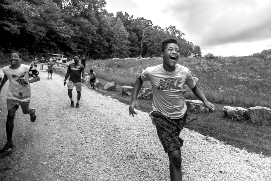 Malachi Smoot, 12, races down a gravel path to catch up with friends on their way from a pond to an archery range Thursday, June 27, 2019, near the Castor River in Bollinger County. (Published July 1)