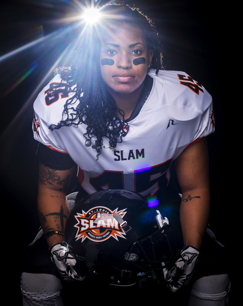 Chelsea Vinson, a linebacker for the St. Louis Slam, part of the Women's Football Alliance, poses for a portrait Thursday, May 2, 2019, at the Southeast Missourian studios in Cape Girardeau.