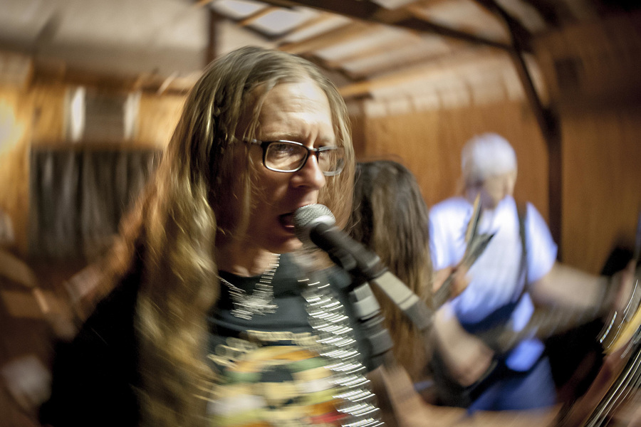 Kirby Ray performs with his metal band, Emaciation, during band practice Sunday, Oct. 20, 2019, at a shed owned by Ray's friend, Kev Steger in Cape Girardeau. “I don’t care about limits or boundaries on what people say our genre is,” Ray said, explaining his black metal songwriting. “To me, it’s just I like the cross-picking guitar... the sound of the ‘EEEERRRRRGGGGHHH,’ the grinding vocals. I could do that all day if you want.
