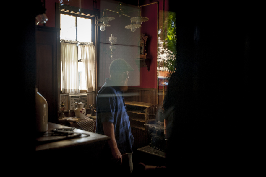 After 136 years as a fixture of Cape Girardeau’s downtown, the Glenn House is falling apart. Bricks are literally crumbling in the riverfront humidity. Caretakers, including historic-preservation student Josh Hepler, say the two-story Victorian home needs tens of thousands of dollars in renovations or else the building, which is listed in the national register of historic places, won’t be standing 20 years from now. Seen here is Hepler, Thursday, June 13, 2019, in the kitchen, where a modern a/c unit and an always-on dehumidifier sit next to a period-accurate wood stove and other accoutrements.