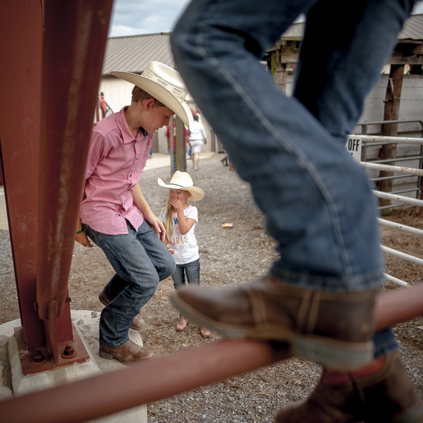 Children play underneath a section of bleachers before the start of the the Sikeston Jaycees Bootheel Rodeo Wednesday, Aug. 7, 2019, in Sikeston.